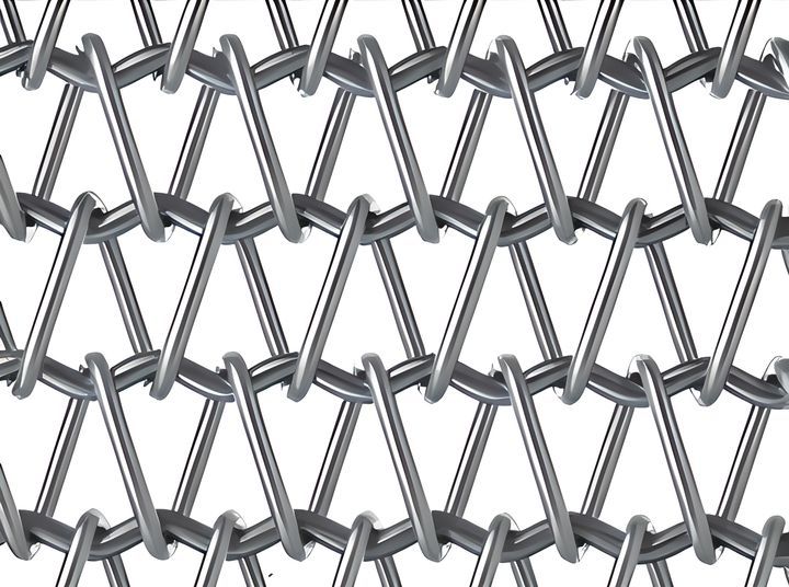 Rod network conveyor belt with standard, convex and concave types has large open areas and good air circulation.